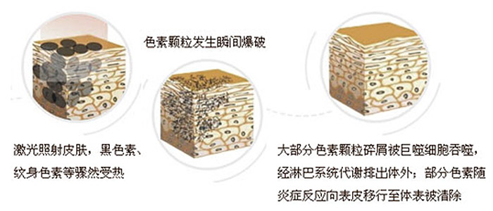 利用色素细胞吸收光能的原理,可选择性地穿透到特定色素细胞所在部位,针对色素细胞进行破坏、瓦解,并利用自身新阵代谢将破坏的色素残渣排出体外。
