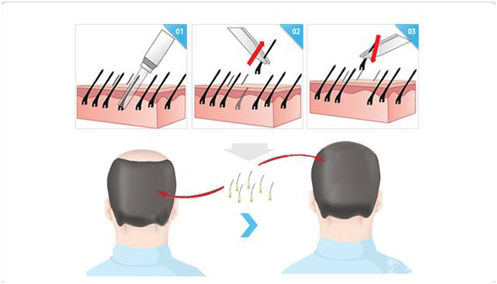 【GH-L0.9式隐痕植发原理】:采用德国双螺旋毛囊提取仪,直径0.9mm毛囊移植针,在高分子显微镜协助下,快速、精准地提取健康毛囊,再经过生物活细胞毛囊培养术分离培养,将毛囊成活率一举提升至95%以上。种植的头发真实、自然、生动、美观,与天生头发完全一样。